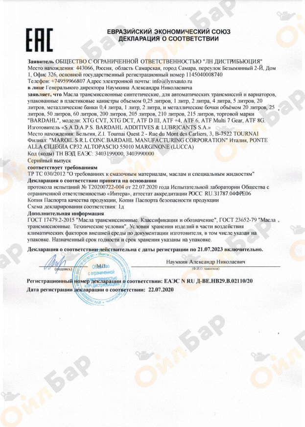 Антифриз соответствует требованиям следующих ОЕМ спецификаций:
