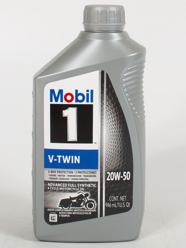 Mobil 1 V TWIN SAE 20W-50- моторное масло предназначено для мотоциклов с сухим сцеплением и сцеплением в масляной ванне. Разработано с целью обеспечить защиту для 4-х тактных двигателей V-twin, особенно с водяным охлаждением. Отличается высокой защитой от коррозии и износа, высокой стабильностью к сдвигу, низким расходом масла на угар и испарение. Не содержит полимерных загустителей. Обеспечивает плавную работу и продлевая ресурс двигателя.