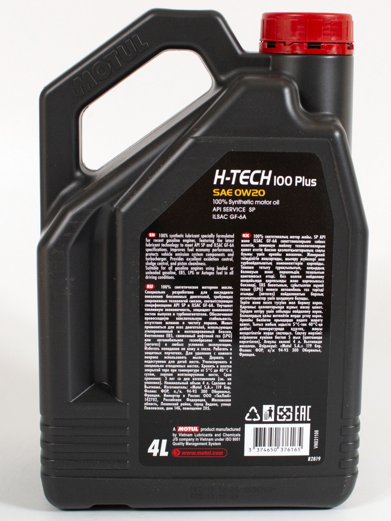 MOTUL H-Tech 100 Plus 0W20, при необходимости, может смешиваться с маслами на минеральной и синтетической основе.