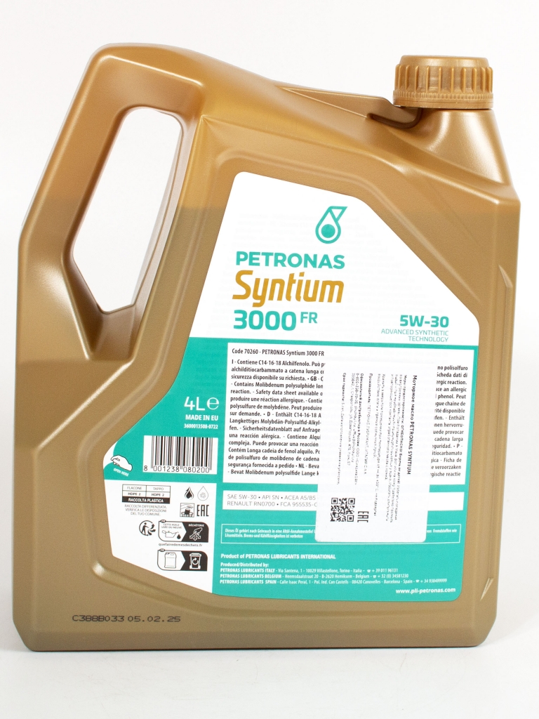 Главная / Моторные масла / Моторное масло PETRONAS SYNTIUM 3000 FR 5W-30, 4л