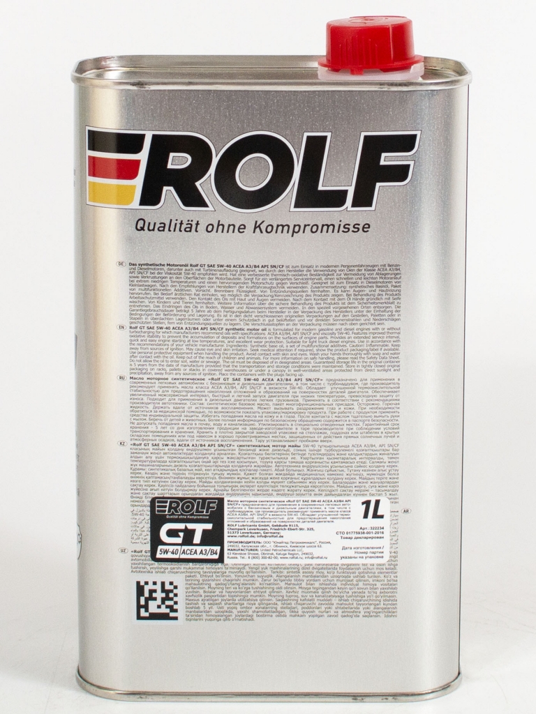 Премиальное полностью синтетическое моторное масло с комбинацией высококачественных базовых компонентов с новейшими присадочными технологиями обеспечивает быстрый и легкий запуск двигателя при самых низких температурах, превосходную защиту двигателя от износа и увеличенный интервал замены. Предотвращает образование отложений в масляной системе, обеспечивает чистоту двигателя. Синтетическое масло ROLF GT 5W-40 имеет высшую спецификацию моторных масел для бензиновых двигателей легковых автомобилей - API SN.