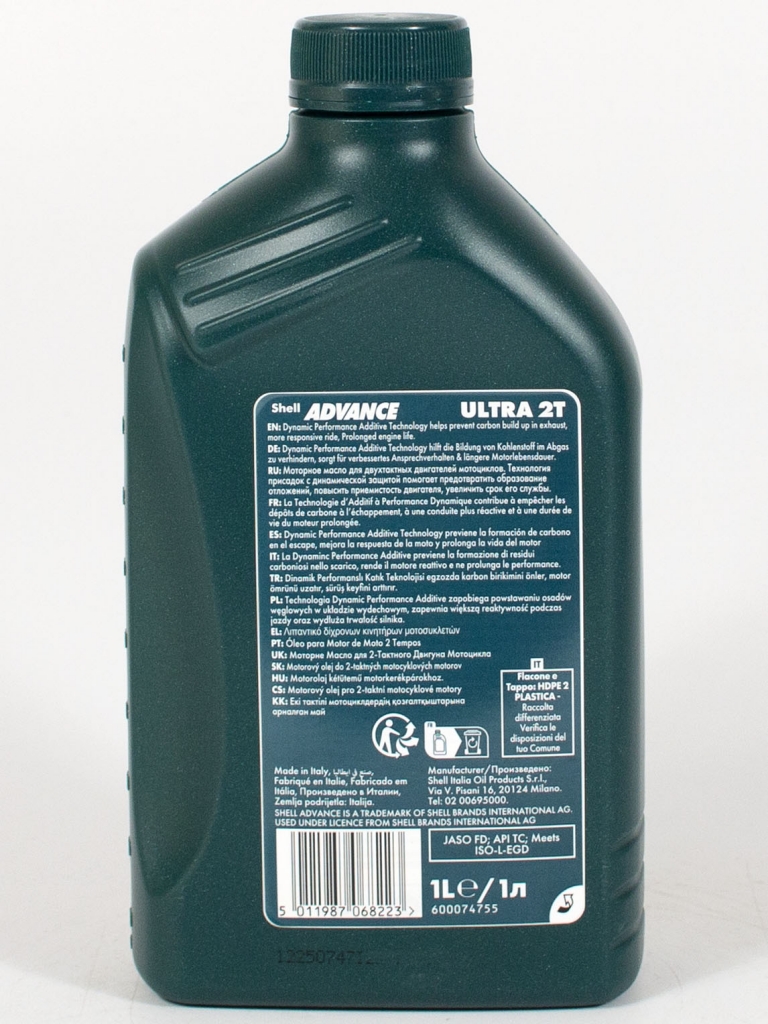 Shell Advance Ultra 2T — масло для двухтактных двигателей, разработанное для обеспечения производительности и защиты мотоциклов и скутеров. Формула с низким уровнем выбросов соответствует самым строгим экологическим стандартам, снижает образование нагара, обеспечивая чистоту, продлевая срок службы деталей и минимизируя износ деталей.