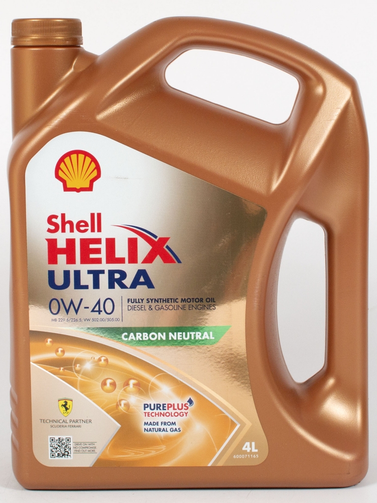Shell Helix Ultra 0W-40 - Полностью синтетическое моторное масло для самых современных двигателей, созданное на основе уникальной технологии Shell PurePlus. Обеспечивает исключительную защиту и очищение даже при самых долгих рекомендованных автопроизводителями интервалах замены масла. Позволяет сохранить чистоту двигателя на уровне заводского конвейера. Защищает турбированные двигатели с непосредственным впрыском бензина от преждевременного самовоспламенения топливно-воздушной смеси (эффекта LSPI).