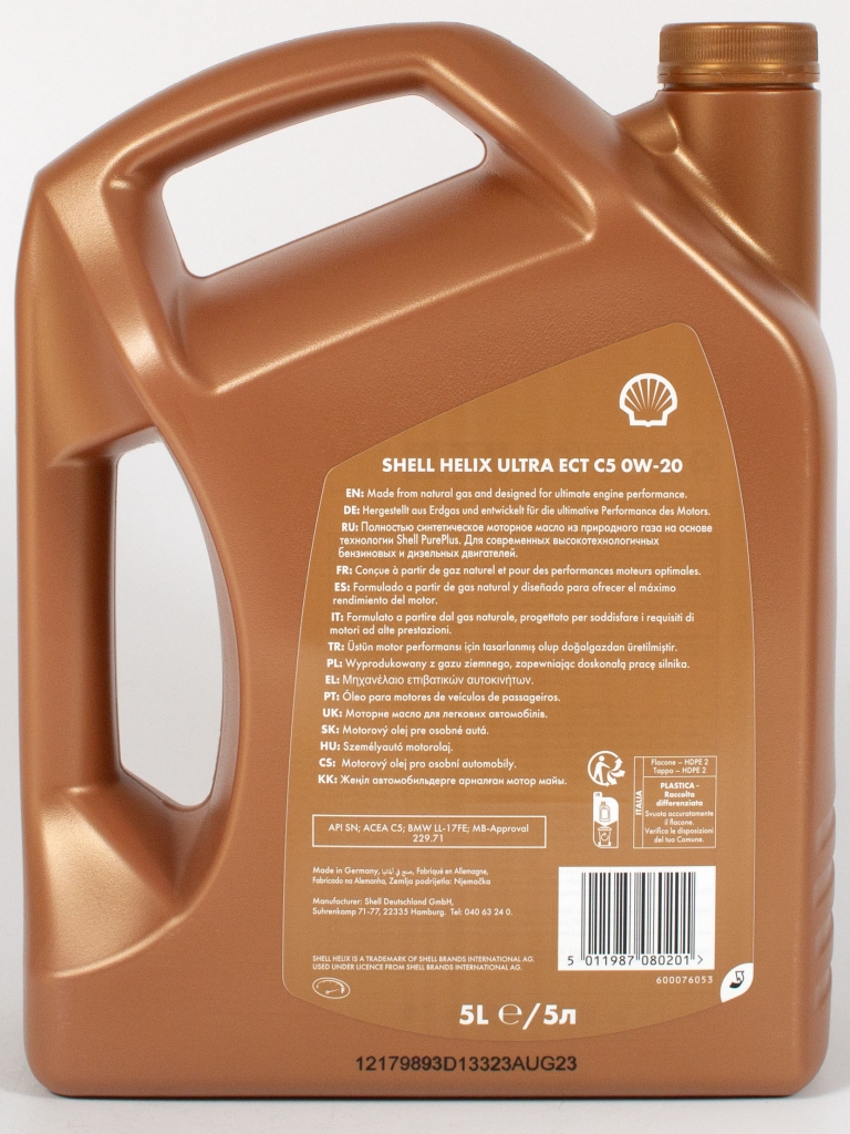 Главная / Моторные масла / Моторное масло Shell Helix Ultra ECT C5 0W-20, 5л