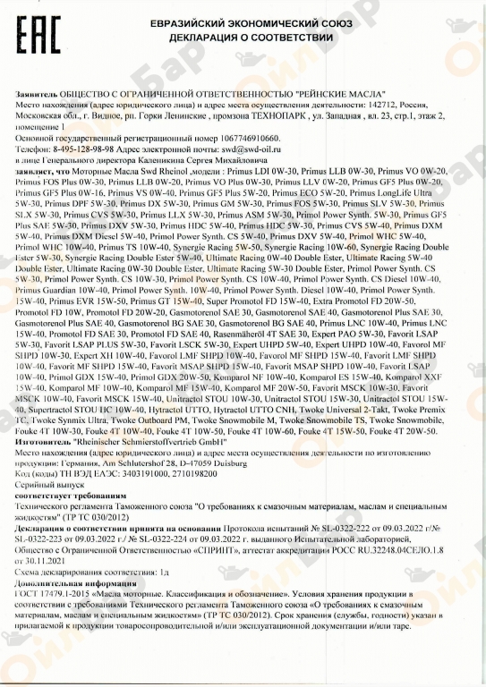 SwdRheinol Primus CVS 5W-40 - имеет следующие преимущества: