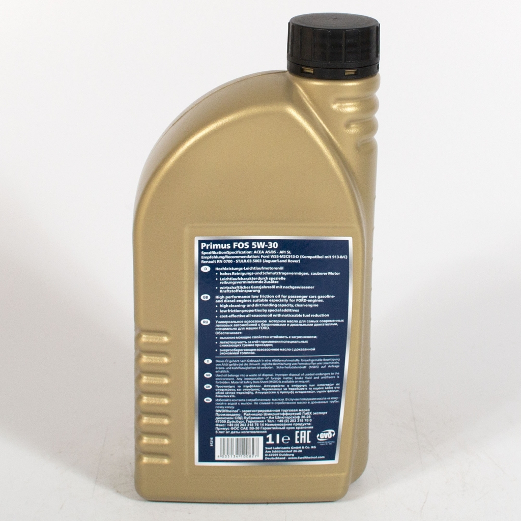 SwdRheinol Primus FOS 5W-30 - высоколегированное, всесезонное, энергосберегающее моторное масло с хорошими антифрикционными свойствами для двигателей легковых автомобилей, где предписано или допускается масло Fuel Economy Oil (масло для экономии топлива). Низкая вязкость базовых масел специальной технологии синтеза, обеспечивает более быструю циркуляцию масла и низкий коэффициент трения, снижая, тем самым, расход топлива и выброс загрязняющих веществ в атмосферу.