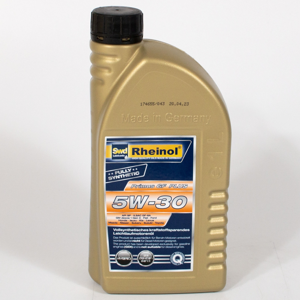 Swd Rheinol Primus GF Plus 5W-30 - синтетическое, на основе гидрокрекинга (HC), моторное масло для самых современных бензиновых двигателей легковых автомобилей и лёгкой коммерческой техники. Специально разработано для "даунсайзинг-двигателей" (двигатели внутреннего сгорания, в которых производители уменьшают рабочий объем без ухудшения характеристик). Специальная комбинация базовых масел и присадок предотвращает преждевременное воспламенение смеси в цилиндре (LSPI - Low Speed Pre Ignition).