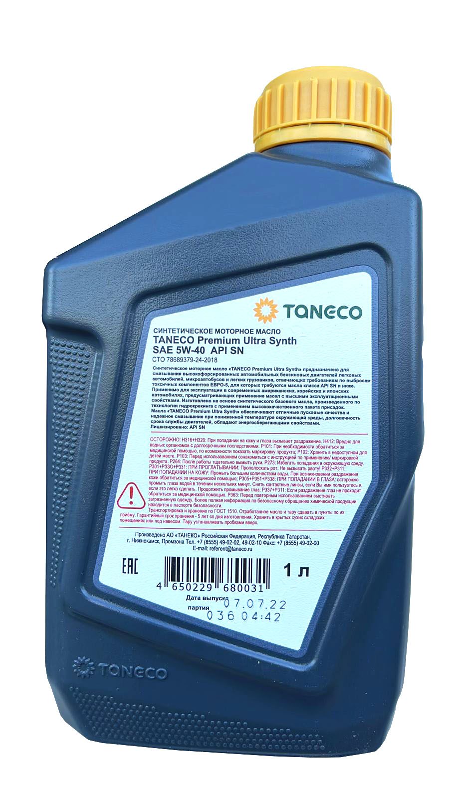 Главная / Моторные масла / Моторное масло Taneco Premium Ultra Synth 5W-40 SN, 1л