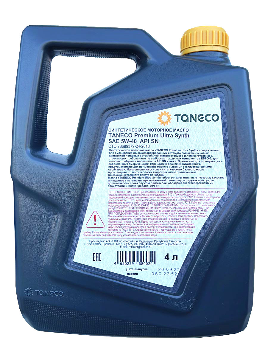 Главная / Моторные масла / Моторное масло Taneco Premium Ultra Synth 5W-40 SN, 4л
