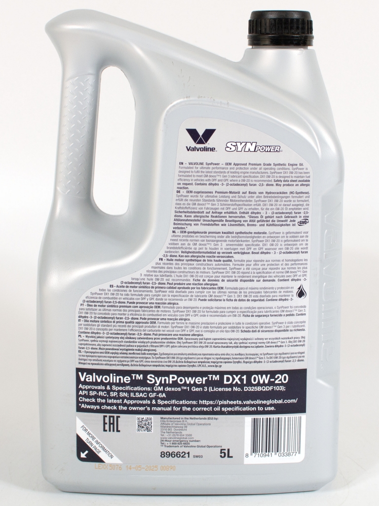 Моторное масло Valvoline SYNPOWER DX1 0W-20, 5л