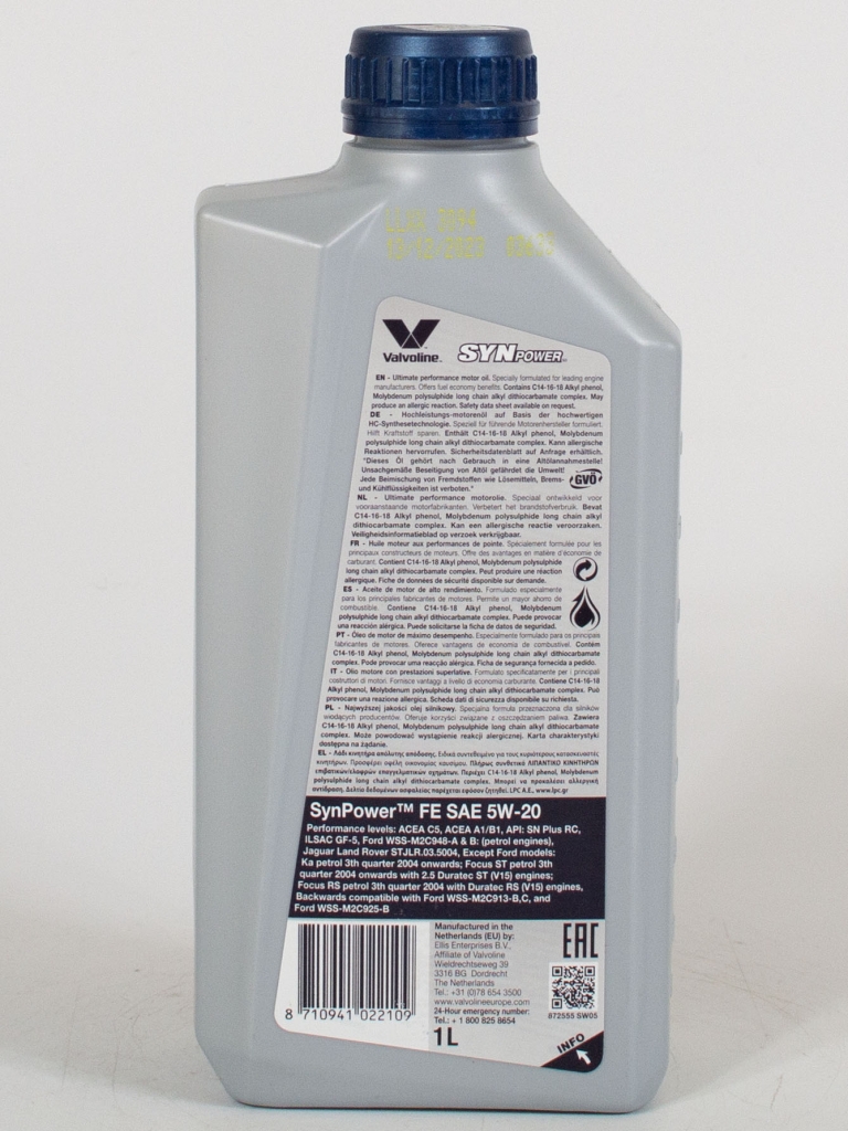 Главная / Моторные масла / Моторное масло Valvoline SYNPOWER FE 5W-20, 1л