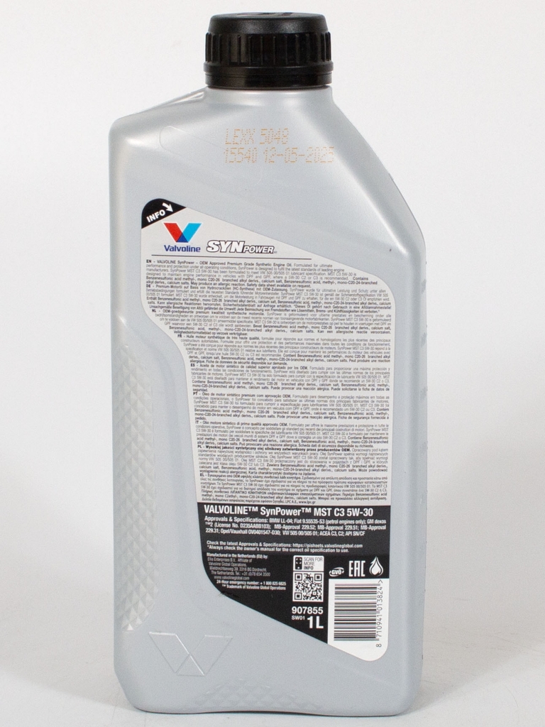 Главная / Моторные масла / Моторное масло Valvoline SYNPOWER MST C3 5W-30, 1л