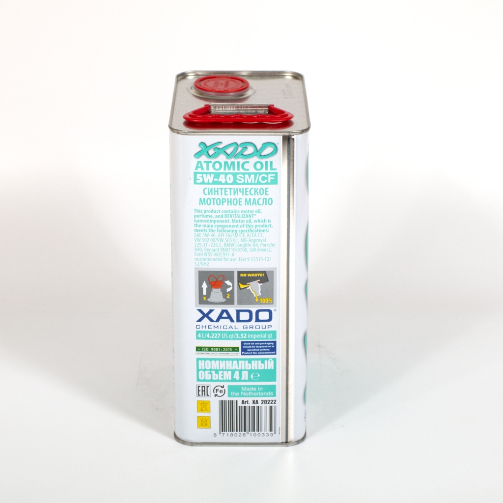 XADO Atomic Oil 5W-40 SM/CF – это ультрасовременное синтетическое моторное масло ультракласса, которое подходит для всесезонного использования. Технология изготовления средства «mid SAPS» предполагает наличие в составе средства новейшего пакета присадок и синтетического базового масла в качестве основы. Масло 5W-40 SM/CF соответствует наивысшим критериям качества, и даже превосходит требования авторитетных американских и европейских классификаций (API SМ/CF и ACEA A3/B3/B4/С3).