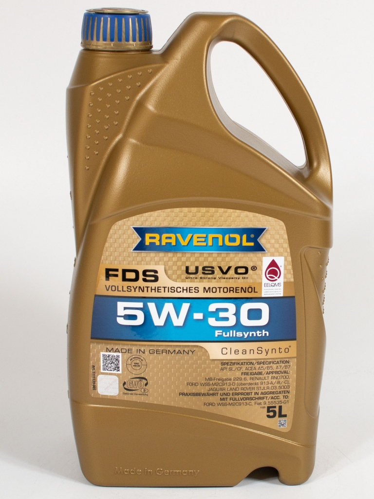 RAVENOL FDS SAE 5W-30 универсальное всесезонное моторное масло для всех современных бензиновых и дизельных двигателей легковых автомобилей, автомобилей типа «универсал», коммерческого транспорта малой тоннажности, а также для автомобилей FORD и RENAULT в соответствии со спецификациями.