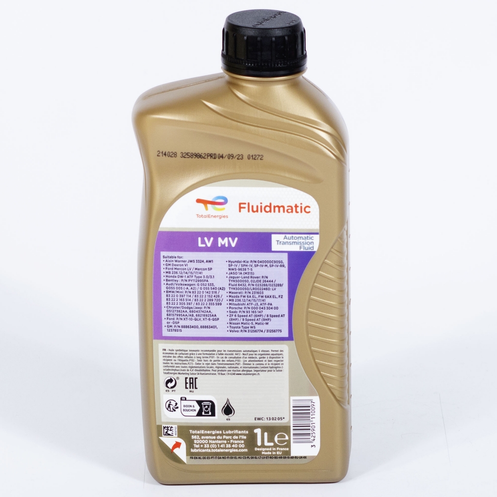Total Fluidmatic LV MV – синтетическая жидкость для современных автоматических трансмиссий, для которых требуется высокоэффективный смазочный материал. Обладает очень высоким уровнем эксплуатационных свойств. Экономия топлива