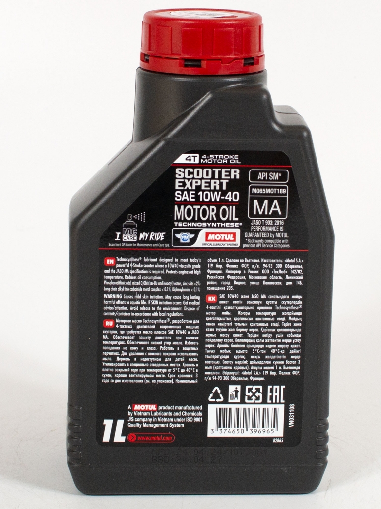 Моторное масло Motul SCOOTER EXPERT 4T MA 10W-40 VN, 1л