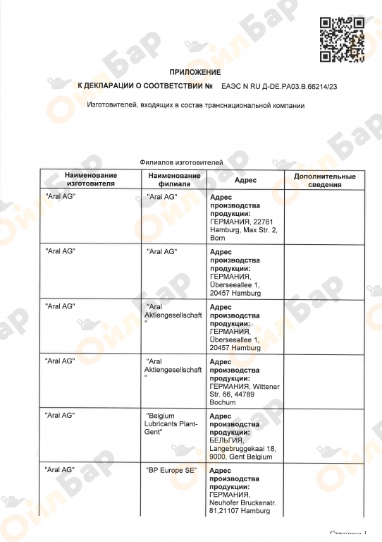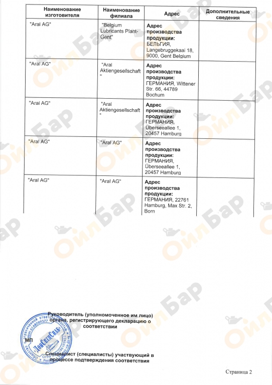 | Бренд | ARAL |