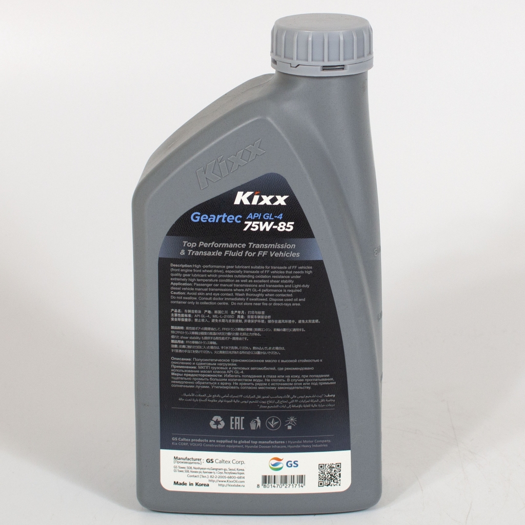 Трансмиссионное масло KIXX GEARTEC FF GL-4 75W-85, 1л