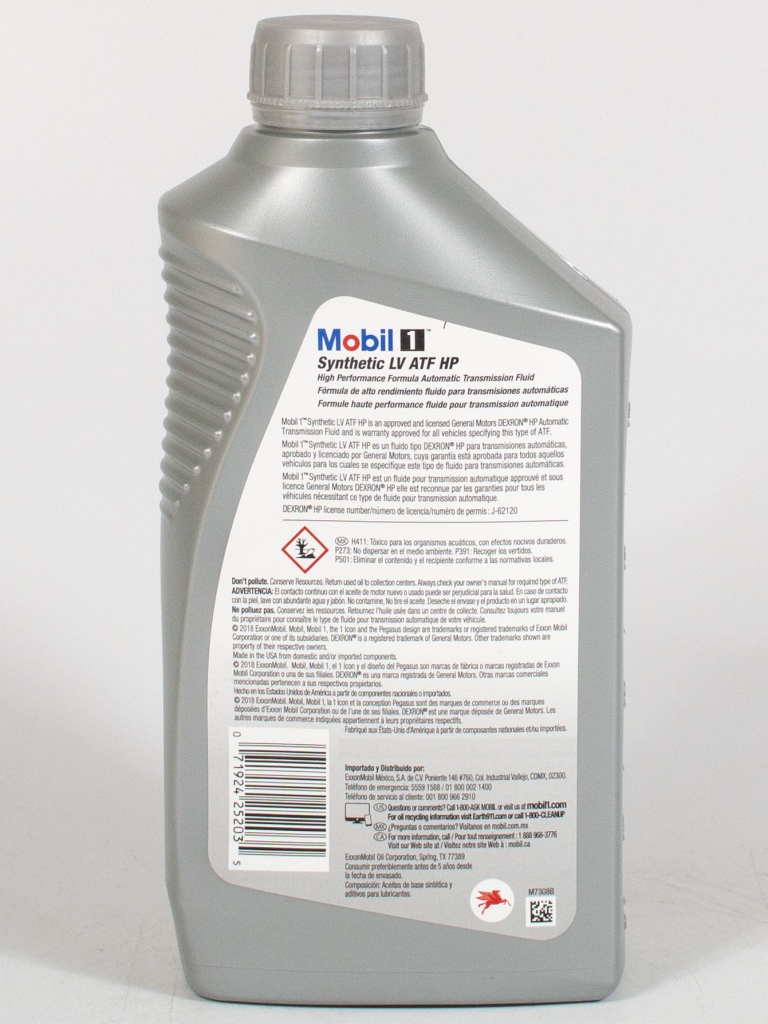 Mobil 1 Synthetic LV ATF HP - это усовершенствованная полностью синтетическая жидкость для автоматических трансмиссий, созданная на основе синтетических базовых масел и усовершенствованной системы присадок. Она одобрена и лицензирована General Motors по DEXRON HP ATF.