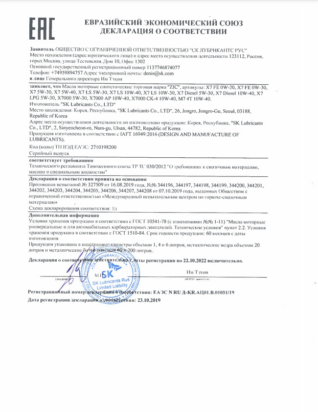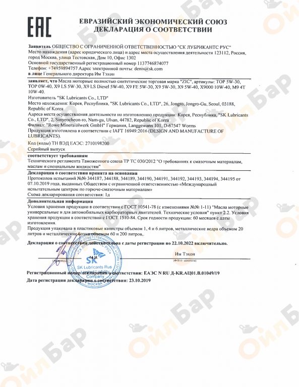 Изготовлено на основе собственного синтетического базового масла YUBASE.